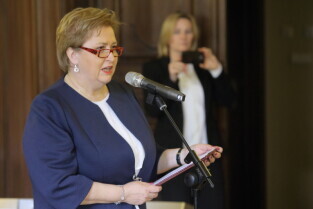 Gdańsk. Uroczystość wręczenia nagród laureatom XVIII Gdańskiej Edycji Konkursu „Ośmiu Wspaniałych”. Nz. Ewa Sikorska-Trela.