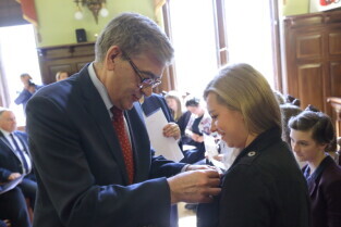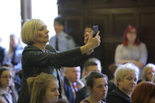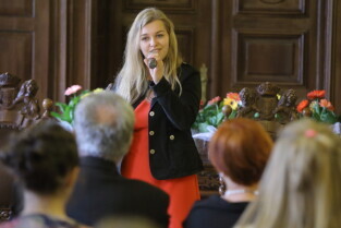 Gdańsk. Uroczystość wręczenia nagród laureatom XVIII Gdańskiej Edycji Konkursu „Ośmiu Wspaniałych”. Nz. Laureatka Hanna Łosińska.