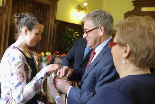 Gdańsk. Uroczystość wręczenia nagród laureatom XVIII Gdańskiej Edycji Konkursu „Ośmiu Wspaniałych”. Nz. Laureatka Kamila Narkiewicz.