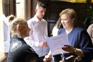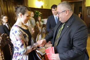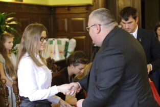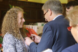 Gdańsk. Uroczystość wręczenia nagród laureatom XVIII Gdańskiej Edycji Konkursu „Ośmiu Wspaniałych”. Nz. Laureatka Paulina Chmielewska.