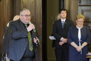 Gdańsk. Uroczystość wręczenia nagród laureatom XVIII Gdańskiej Edycji Konkursu „Ośmiu Wspaniałych”. Nz. Wiceprezydent Gdańska Piotr Kowalczuk.