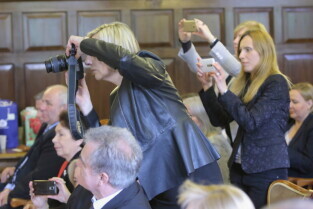 Gdańsk. Uroczystość wręczenia nagród laureatom XVIII Gdańskiej Edycji Konkursu „Ośmiu Wspaniałych”. Nz. Bożena Brauer - NSZZ Solidarność.