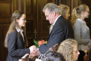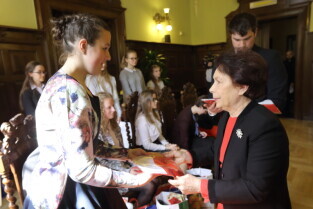 Gdańsk. Uroczystość wręczenia nagród laureatom XVIII Gdańskiej Edycji Konkursu „Ośmiu Wspaniałych”. Nz. Laureatka Kaja Górska.