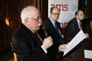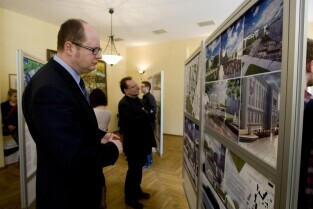 Ogłoszenie wyników oraz wystawa pokonkursowa projektów architektonicznych na zagospodarowanie Placu Wałowego. Gdańsk, Nowy Ratusz. Nz. Prezydent Gdańska Paweł Adamowicz