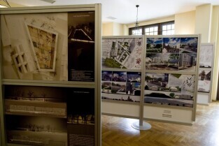 Ogłoszenie wyników oraz wystawa pokonkursowa projektów architektonicznych na zagospodarowanie Placu Wałowego. Gdańsk, Nowy Ratusz. Nz. zwycięska praca, I-sze równorzędne miejsce