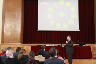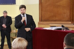 Dziś w Centrum Kształcenia Ustawicznego w Gdańsku odbyła się publiczna prezentacja ofert w konkursie na operatora szkoły przy ul. Azaliowej 18 w Kokoszkach. Nz. prezentacja Zespołu Szkół im. Macieja Płażyńskiego sp. z o.o. z Pucka.