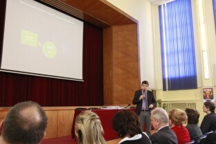 Dziś w Centrum Kształcenia Ustawicznego w Gdańsku odbyła się publiczna prezentacja ofert w konkursie na operatora szkoły przy ul. Azaliowej 18 w Kokoszkach. Nz. prezentacja Fundacji Familijny Poznań z Poznania.