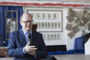 I LO w Gdańsku. Konkurs recytatorski poświęcony Jackowi Kaczmarskiemu. Nz. Prezydent Gdańska Paweł Adamowicz