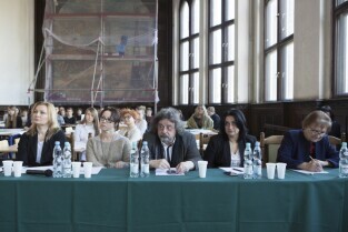 I LO w Gdańsku. Konkurs recytatorski poświęcony Jackowi Kaczmarskiemu. Nz. Jury konkursu, od lewej: Ewa Jendrzejewska-Musiał, Joanna Kreft-Baka, Antoni Pawlak, Bożena Olechnowicz