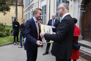 Gdańsk Oliwa, Pałac Opatów. Uroczystość inauguracji działalności Konsulatu Honorowego Estonii w Gdańsku. Pierwszym w powojennej historii miasta Konsulem Honorowym Estonii został Tomasz Posadzki. Nz. Ambasador Estonii w Polsce Taavi Toom