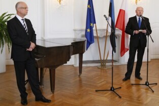 Gdańsk Oliwa, Pałac Opatów. Uroczystość inauguracji działalności Konsulatu Honorowego Estonii w Gdańsku. Pierwszym w powojennej historii miasta Konsulem Honorowym Estonii został Tomasz Posadzki. Nz. od lewej: Ambasador Estonii w Polsce Taavi Toom, Wiceminister MSZ Estonii Lauri Bambus, Konsul Honorowy Estonii Tomasz Posadzki