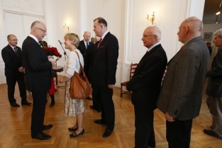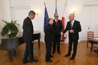 Gdańsk Oliwa, Pałac Opatów. Uroczystość inauguracji działalności Konsulatu Honorowego Estonii w Gdańsku. Pierwszym w powojennej historii miasta Konsulem Honorowym Estonii został Tomasz Posadzki. Nz. gratulacje składa Marszałek Senatu RP Bogdan Borusewicz (po środku), po lewej Ambasador Estonii w Polsce Taavi Toom, z tyłu Wiceminister MSZ Estonii Lauri Bambus