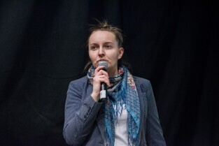 Konsultacje w sprawie rewitalizacji - Dolne Miasto / Plac Wałowy / Stare Przedmieście. Nz Aleksandra Twardowska - współorganizator festiwalu FETA