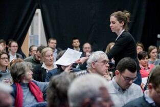 Konsultacje w sprawie rewitalizacji - Dolne Miasto / Plac Wałowy / Stare Przedmieście. Nz Agnieszka Sulwska, projektant w Biurze Rozwoju Gdańska
