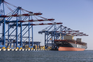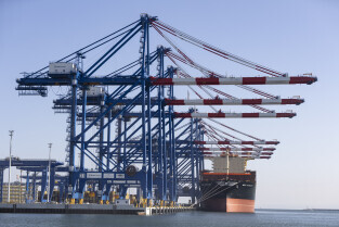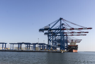 Gdańsk.Kontenerowiec przy terminalu T3 MSC Stacey.