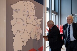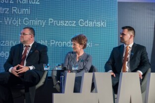 Gdańsk, Amber Expo przy ul. Żaglowej. Konwencja w obronie samorządności. Nz Grzegorz Gołuński - Burmistrz Kartuz, Magdalena Kołodziejczak - Wójt Gminy Pruszcz Gdański, Michał Pasieczny - Burmistrz Rumi
