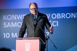 Gdańsk, Amber Expo przy ul. Żaglowej. Konwencja w obronie samorządności. Nz Prezydent Gdańska Paweł Adamowicz