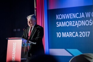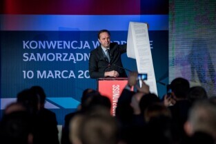 Gdańsk, Amber Expo przy ul. Żaglowej. Konwencja w obronie samorządności. Nz Prezydent Sopotu Jacek Karnowski