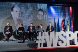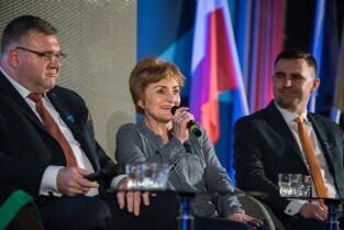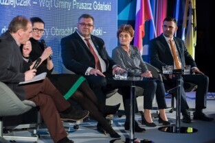 Gdańsk, Amber Expo przy ul. Żaglowej. Konwencja w obronie samorządności. Nz prof. dr hab. Cezary Obracht-Prondzyński, Aleksandra Dulkiewicz - Radna Miasta Gdańska, Grzegorz Gołuński - Burmistrz Kartuz, Magdalena Kołodziejczak - Wójt Gminy Pruszcz Gdański, Michał Pasieczny - Burmistrz Rumi