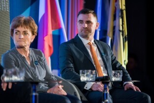 Gdańsk, Amber Expo przy ul. Żaglowej. Konwencja w obronie samorządności. Nz Magdalena Kołodziejczak - Wójt Gminy Pruszcz Gdański, Michał Pasieczny - Burmistrz Rumi