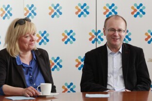 Gdańsk, siedziba Gdańskiego Obszaru Metropolitalnego. Oficjalne wręczenie nagród w plebiscycie „Korona Smakosza”. Nagrody otrzymało 10 najpopularniejszych restauracji, barów i kawiarni z Trójmiasta i okolic. Nz. (od prawej) zastępca Prezydenta Gdańska Maciej Lisicki i dyrektor Biura Prezydenta ds. Promocji Miasta UM Anna Zbierska.
