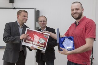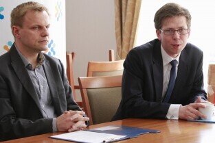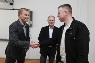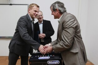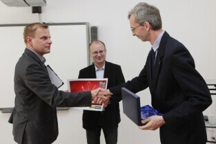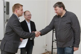 Gdańsk, siedziba Gdańskiego Obszaru Metropolitalnego. Oficjalne wręczenie nagród w plebiscycie „Korona Smakosza”. Nagrody otrzymało 10 najpopularniejszych restauracji, barów i kawiarni z Trójmiasta i okolic. Nz. (od prawej) dyrektor Biura GOM Michał Glaser i dyrektor hali Makro w Przejazdowie Andrzej Rogowski.