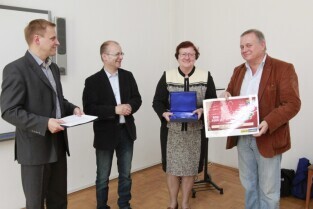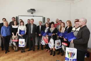 Gdańsk, siedziba Gdańskiego Obszaru Metropolitalnego. Oficjalne wręczenie nagród w plebiscycie „Korona Smakosza”. Nagrody otrzymało 10 najpopularniejszych restauracji, barów i kawiarni z Trójmiasta i okolic. Nz. (od prawej) dyrektor Biura GOM Michał Glaser, dyrektor hali Makro w Przejazdowie Andrzej Rogowski, zastępca Prezydenta Gdańska Maciej Lisicki i dyrektor Biura Prezydenta ds. Promocji Miasta UM Anna Zbierska.