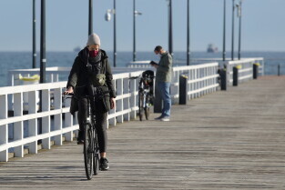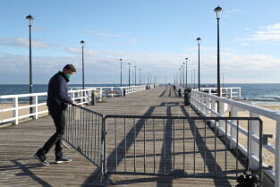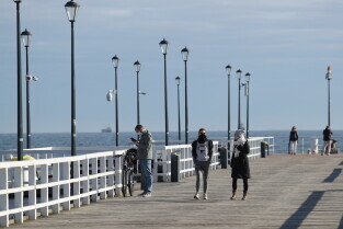 Gdańsk. Koronawirus. Od dziś można wejść do parku, lasu, na plażę - znika część ograniczeń. Nz. Otwarte molo w Brzeźnie.