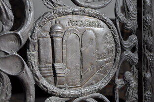 Dzwon z Iwanogrodu w południowej ścianie kruchty Bazyliki Mariackiej