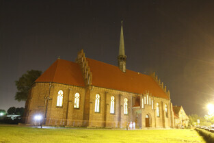 Kościół Matki Bożej Bolesnej w Gdańsku tuż przed iluminacją