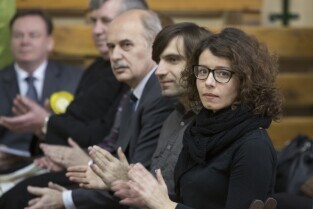 Gdańsk Strzyża. Nadanie imienia Krzysztofa Kolbergera IX Liceum Ogólnokształcącemu w Gdańsku. Nz. od lewej: Wicemarszałek Woj. Pomorskiego Hanna Zych-Cisoń, Prezydent Gdańska Paweł Adamowicz, Z-ca Prezydenta Gdańska Piotr Kowalczuk, Przewodniczący Rady Miasta Gdańska Bogdan Oleszek