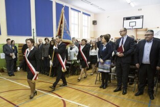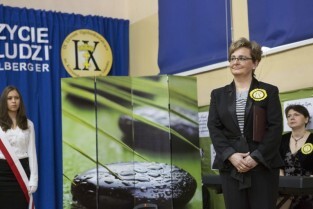 Gdańsk Strzyża. Nadanie imienia Krzysztofa Kolbergera IX Liceum Ogólnokształcącemu w Gdańsku. Nz. Wicemarszałek Woj. Pomorskiego Hanna Zych-Cisoń