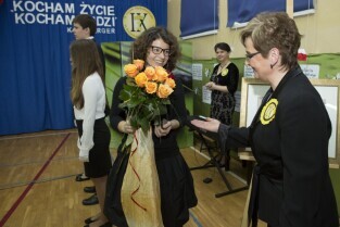 Gdańsk Strzyża. Nadanie imienia Krzysztofa Kolbergera IX Liceum Ogólnokształcącemu w Gdańsku. Nz. córka patrona szkoły Julia Kolberger