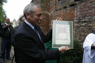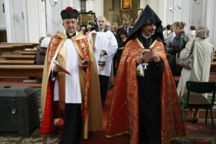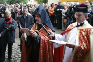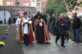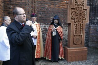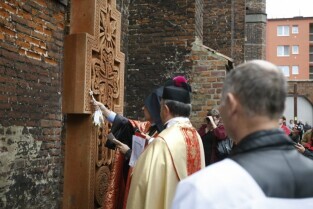 Gdańsk, Kościół p.w. Św. Piotra i Pawła. Ceremonia poświęcenia tradycyjnego ormiańskiego "kamienia krzyżowego", tzw. Chaczkara, ufundowanego w Gdańsku przez ormiańską fundację "Piunik" na znak tolerancji i przenikania się kultury polskiej i ormiańskiej oraz podkreślenia wspólnej tradycji wiary chrześcijańskiej obu narodów