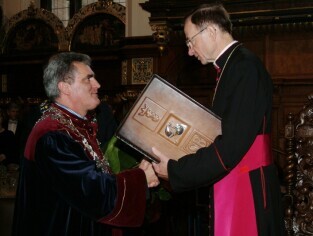 Ks. infułat Stanisław Bogdanowicz. Honorowy Obywatel Miasta Gdańska, autor publikacji historycznych i książek dla dzieci, zaangażowany w kwestię powrotu dzieł sztuki sakralnej do gdańskiej bazyliki