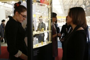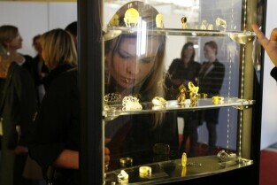 Promocja wydawnictwa Księga Trendów 2011+ oraz wernisaż bursztynowych projektów stworzonych przez studentów IV i V roku Pracowni Projektowania Biżuterii Akademii Sztuk Pięknych w Gdańsku pod kierownictwem dr Sławomira Fijałkowskiego. Gdańsk, Targi Amberif MTG