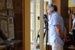 Kulisy powstawania Rodzinnego zdjęcie Gdańszczan podczas IV Światowego Zjazdu Gdańszczan na Długim Targu, wykonywane przez fotografa Dariusza Kulę. Nz. Michał Juszczakiewicz