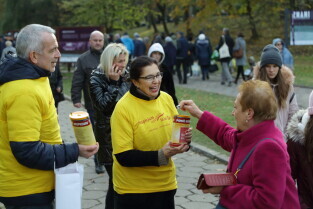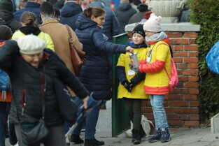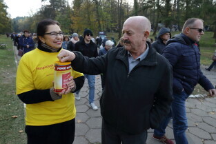 Gdańsk, Cmentarz Srebrzysko. Wolontariusze kwestują na rzecz Hospicjum im. ks. Dutkiewicza.