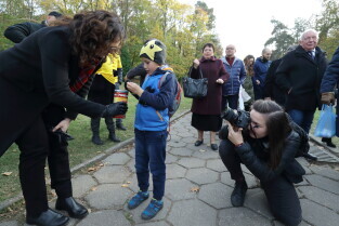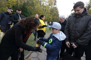 Gdańsk, Cmentarz Srebrzysko. Wolontariusze kwestują na rzecz Hospicjum im. ks. Dutkiewicza. Nz. Prezydent Gdańska Aleksandra Dulkiewicz.