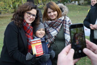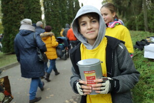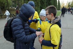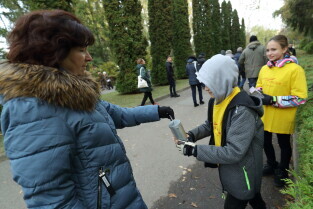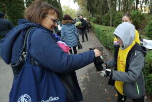 Gdańsk, Cmentarz Łostowicki. Wolontariusze kwestują na rzecz Hospicjum im. ks. Dutkiewicza.