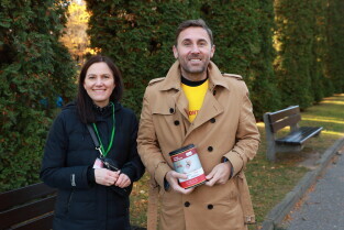 Gdańsk. Kwesta na rzecz Hospicjum im. ks. E. Dutkiewicza SAC na gdańskich cmentarzach. Nz. Na Cmentarzu Srebrzysko kwestowali Radna Teresa Wasilewska i radny Andrzej Kowalczys.