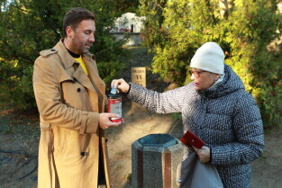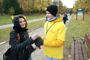 Gdańsk. Kwesta na rzecz Hospicjum im. ks. E. Dutkiewicza SAC na gdańskich cmentarzach. Nz. Na Cmentarzu w Oliwie kwestowała Radna Sylwia Cisoń.