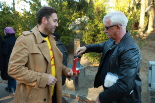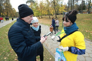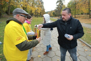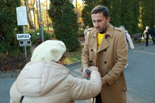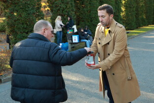 Gdańsk. Kwesta na rzecz Hospicjum im. ks. E. Dutkiewicza SAC na gdańskich cmentarzach. Nz. Na Cmentarzu Łostowickim kwestował Wiceprezydent Gdańska Piotr Borawski.