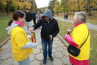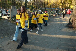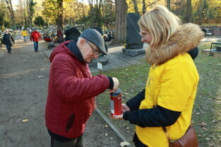 Gdańsk. Kwesta na rzecz Hospicjum im. ks. E. Dutkiewicza SAC na gdańskich cmentarzach. Nz. Kwesta na Cmentarzu w Oliwie.
