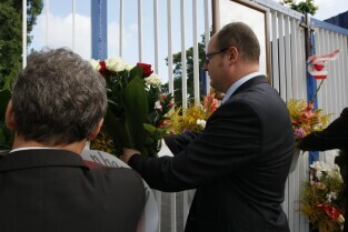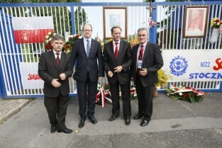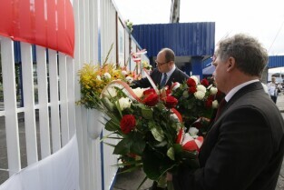 Delegacja władz Gdańska i Pomorza złożyła kwiaty pod historyczną Bramą nr 2 Stoczni Gdańskiej w 30. rocznicę podpisania Porozumień Sierpnia 80r. W sładzie delegacji znaleźli się: Wojewoda Pomorski Roman Zaborowski, Marszałek Woj. Pomorskiego Mieczysław Struk, Prezydent Gdańska Paweł Adamowicz, Przewodniczący Rady Miasta Gdańska Bogdan Oleszek