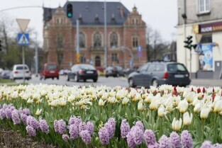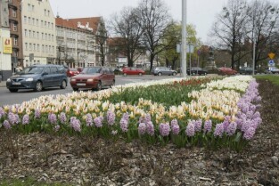 Gdańsk, Targ Drzewny. Miejskie rabaty z kwiatami