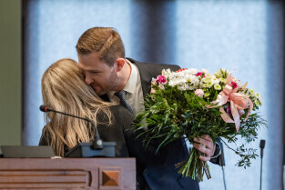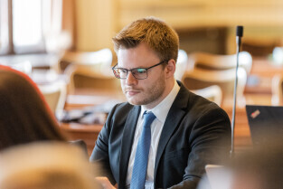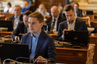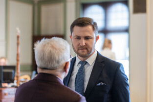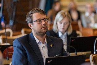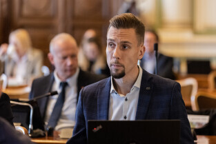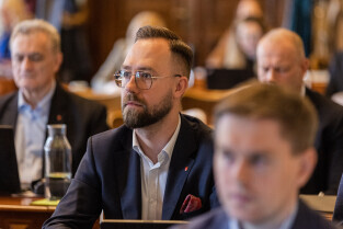 Gdańsk, ul. Wały Jagiellońskie. LXXVI sesji Rady Miasta Gdańska. Nz. radny Łukasz Bejm