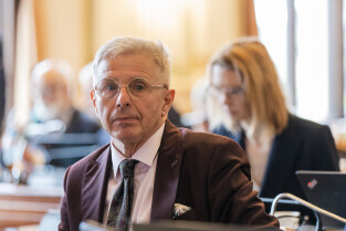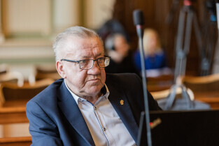 Gdańsk, ul. Wały Jagiellońskie. LXXVI sesji Rady Miasta Gdańska. Nz. radny Jan Perucki