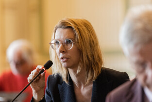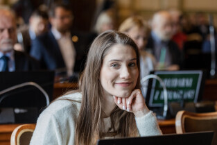 Gdańsk, ul. Wały Jagiellońskie. LXXVI sesji Rady Miasta Gdańska. Nz. radna Katarzyna Czerniewska