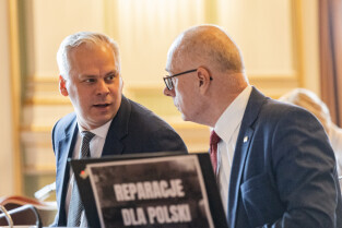 Gdańsk, ul. Wały Jagiellońskie. LXXVI sesji Rady Miasta Gdańska. Nz. (od lewej) radni Mateusz Skarbek i Piotr Gierszewski